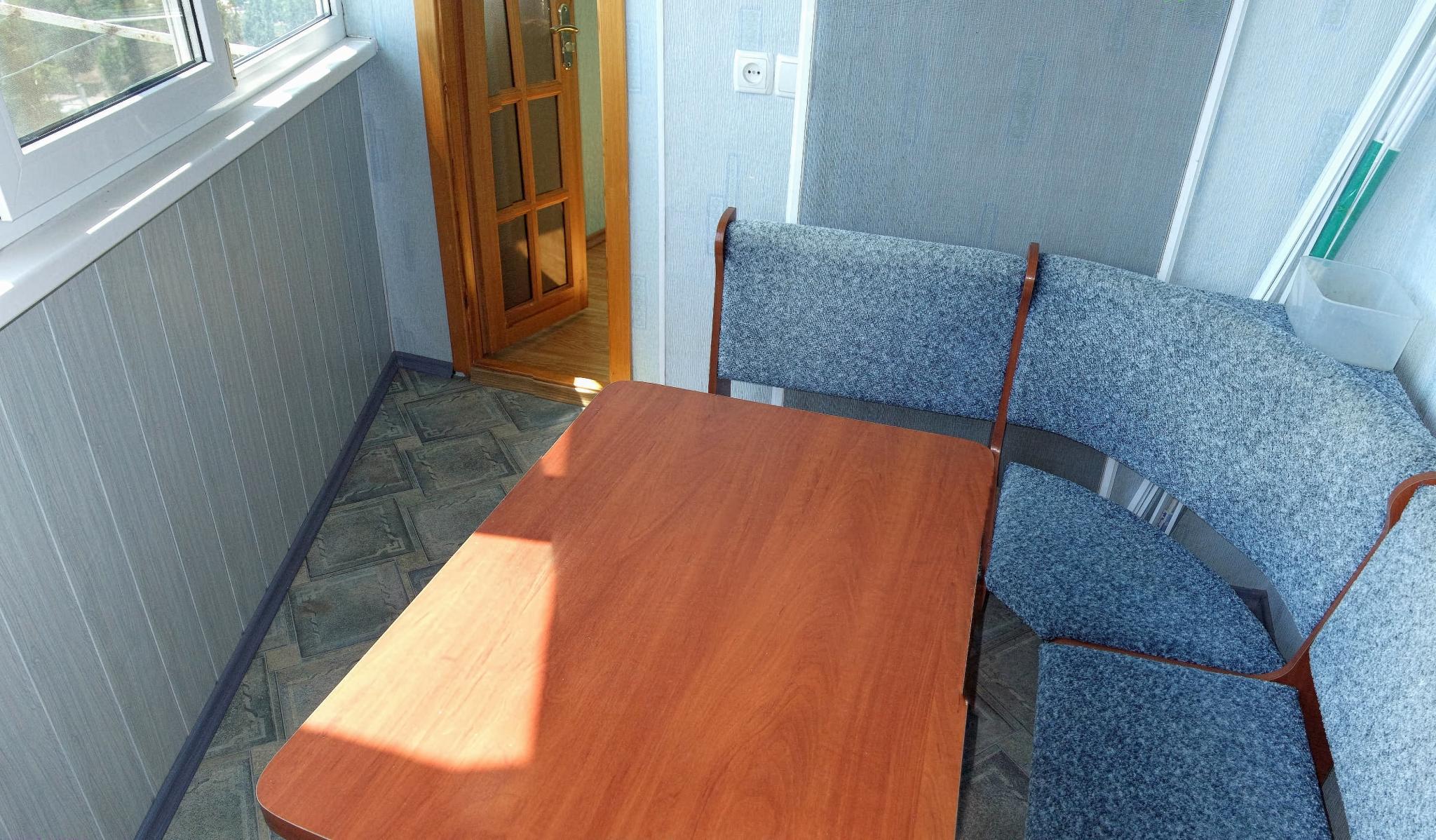 Самое путевое место в этой квартире, на мой взгляд, это лоджия с видом на море. Там стоит столик, мягкий уголок. Шикарное место. И днем, в самую жару, вернувшись с моря, приняв душ и пообедав, так здорово расположиться на лоджии с бокальчиком холодного пива… НО!!! Днем там очень жарко. Жалюзи на окна просто необходимы! А еще вентилятор в придачу. Кондиционер в квартире мощный, охлаждает всю квартиру, но не лоджию.
