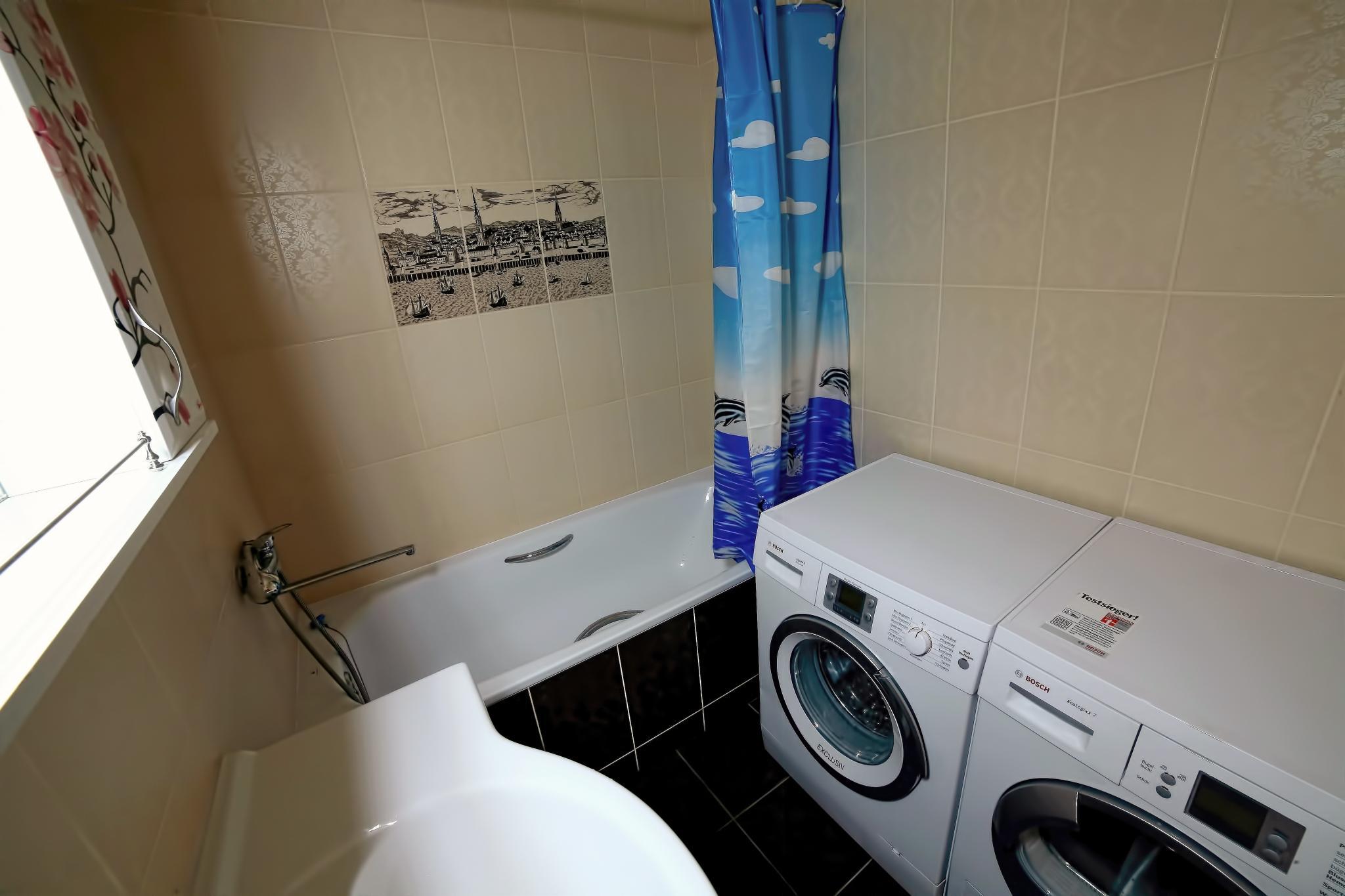 Квартира виявилась просторою та комфортною, відчувається домашня атмосфера. З балкону однієї із кімнат відкривається гарний вид на море, при тому, що квартира знаходиться на другому поверсі. Є кондиціонери, пральна машина, сушка, праска, гладильна дошка, посудомийна машина, холодильник і дуже зручні ліжка (особливо двоспальні з ортопедичними матрацами). Цілодобово є гаряча, холодна вода та Інтернет, швидкість якого цілком влаштовувала. Всі побутові питання господарі вирішили. Що ще треба для гарного відпочинку?!