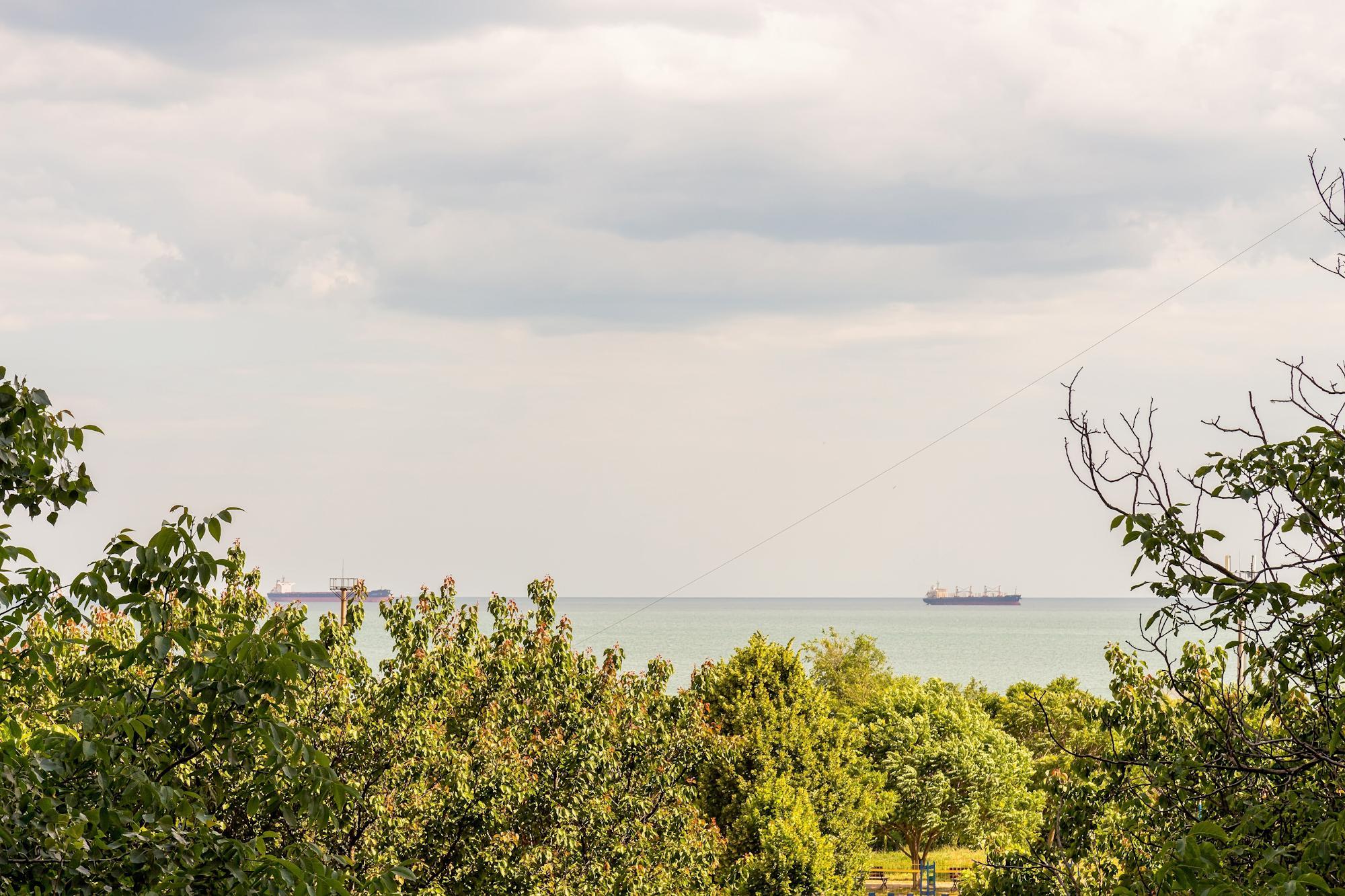 Из окон открывается шикарный вид на море, но немного мешают деревья.